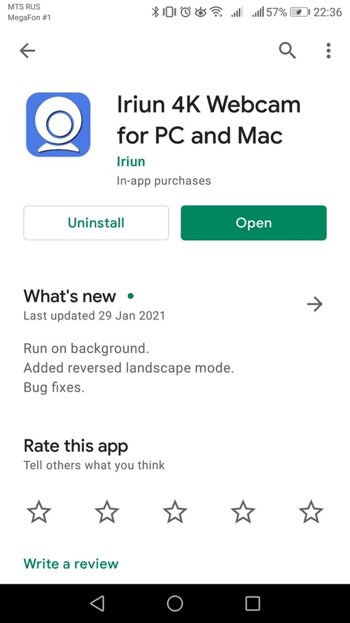 2. На телефоне зайдите в магазин приложений, введите в поиск iriun, скачайте приложение.